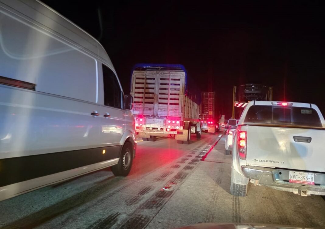 Debido a las dimensiones del vehículo accidentado, el tráfico se ha visto seriamente comprometido, resultando en largas filas de vehículos en la vialidad.