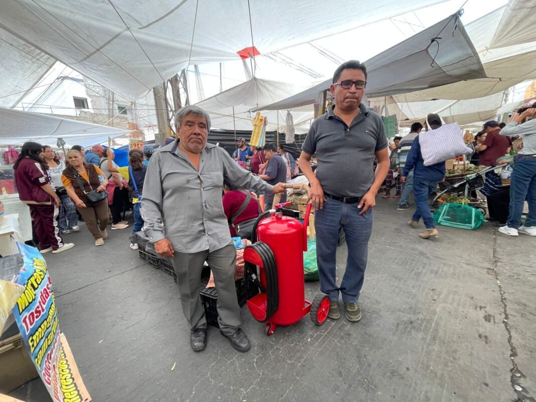 Explicó que estos extintores son adquiridos con ingresos propios de la unión, no obstante, cada agremiado que hace uso de gas LP en el tianguis, debe de contar con sus propios extintores.