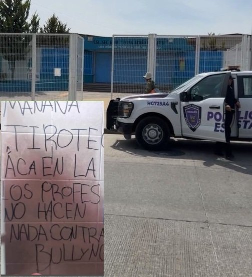 Esta misma mañana de viernes, se reportó a los teléfonos de Emergencias, sobre la aparición de una cartulina en la reja de la entrada con un mensaje de amenaza en contra de los docentes del plantel escolar, en el que advertían de un tiroteo y acusaban a los profesores que no hacían nada para erradicar el bullyng.