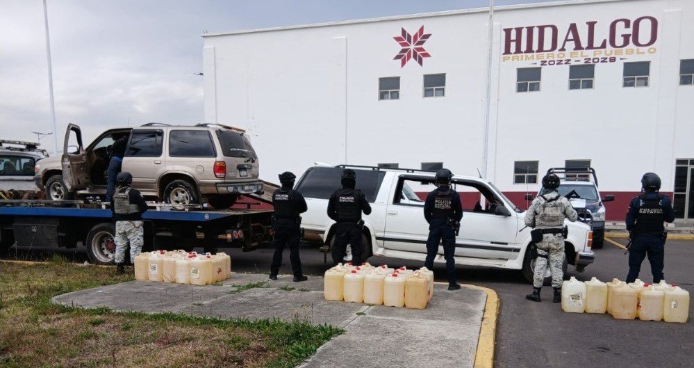 En total, seis personas del sexo masculino fueron detenidas, así mismo aseguraron cuatro camionetas, dos de las cuales transportaban aproximadamente 800 litros de hidrocarburo, así como un vehículo sedán con estrobos.