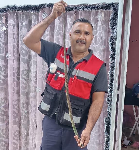 En el lugar, los rescatistas encabezados por Carlos Francisco Hidalgo Contreras localizar al reptil, una serpiente conocida como “chirrionera”, “serpiente látigo” o “chicotera”, considerada como inofensiva, de un metro veinte centímetros aproximadamente, misma que fue capturada con una pinza herpetológica y trasladada a la estación de bomberos donde la recogería un biólogo del Instituto Tecnológico de Huejutla (ITH) con el objetivo de llevarla al herpetario para estudiarla y posteriormente ponerla en libertad.