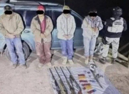 La madrugada de este jueves, elementos de la Guardia Nacional y del Ejército Mexicano, que realizaban un operativo de vigilancia, lograron la captura de cuatro individuos que mostraron una actitud sospechosa, cuando circulaban a bordo de un vehículo y se descubrió que portaban armas largas y 64 cartuchos útiles.
