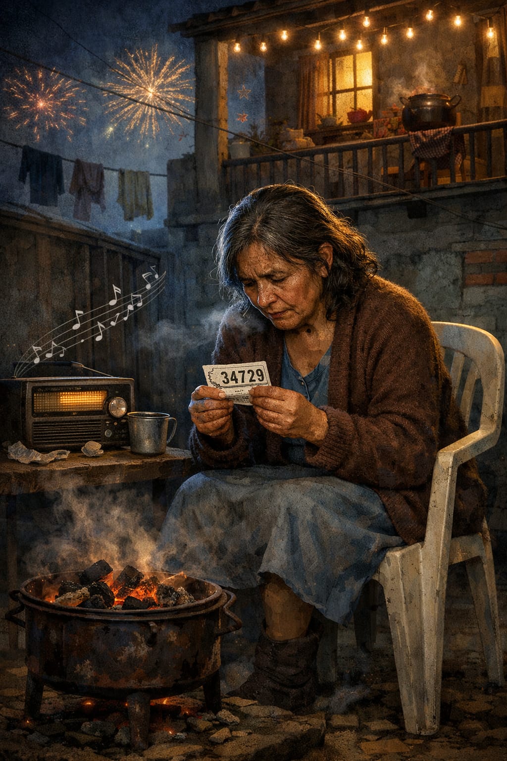 El frío seco de enero mordió los nudillos. Cuando el locutor anunció los números del sorteo, ella apenas levantó la vista. Había comprado el boleto por costumbre, lanzó una moneda a un pozo sin creer en los deseos, con la inercia que le había heredado su padre.