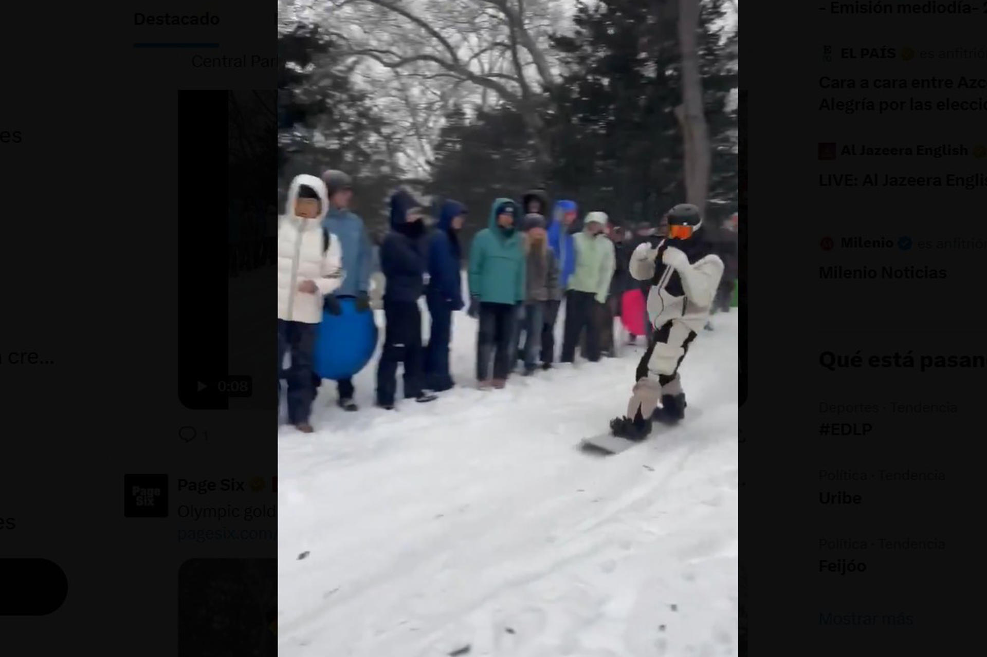 El triple campeón olímpico de snowboard, Shaun White, ofreció un espectáculo de trucos y piruetas en Central Park con motivo de la gran tormenta que dejó grandes cantidades de nieve en dos tercios del país, y tiñó de blanco gran parte de Nueva York.