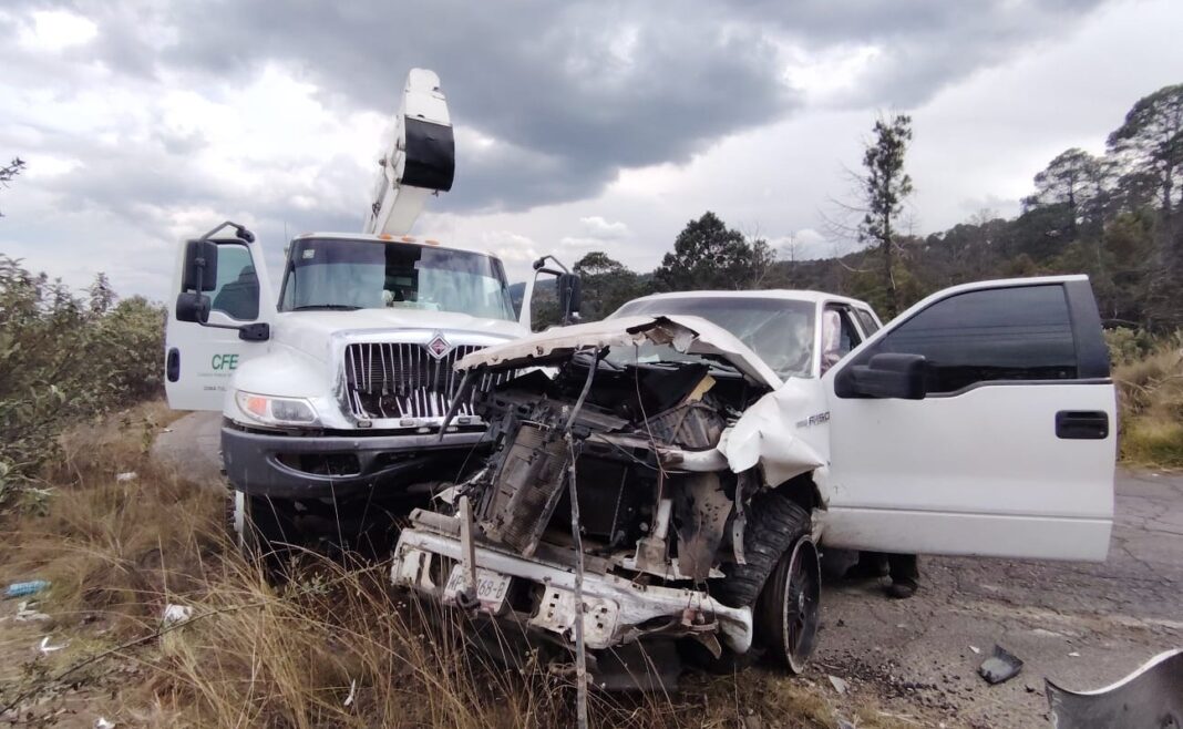 Cuautepec de Hinojosa, Hgo.- Una grúa de la Comisión Federal de Electricidad se vio involucrada en un choque, donde además participaron una camioneta y un auto particular, la tarde del pasado miércoles 21 de enero, en las curvas de El Aserradero en el municipio de Cuautepec de Hinojosa.