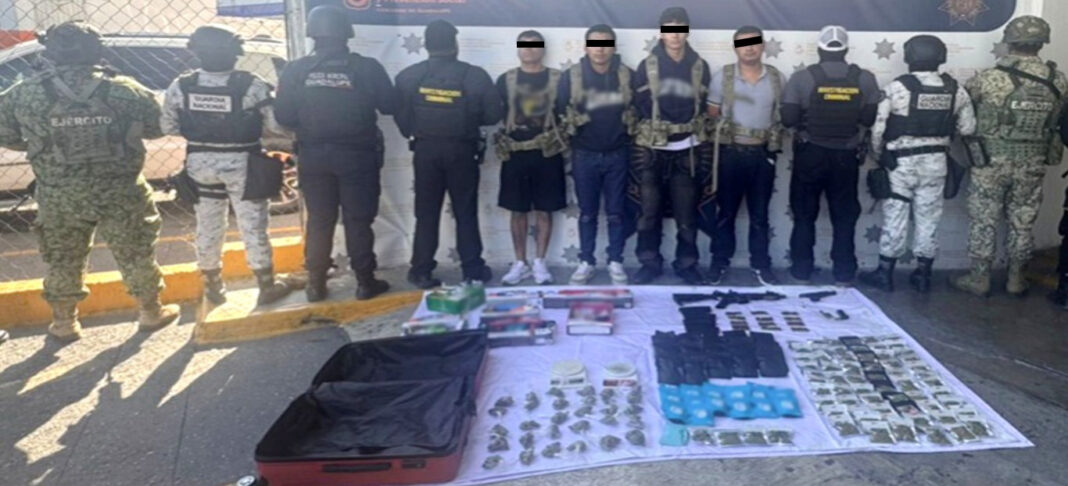 Por su parte en Guadalupe, Nuevo León detuvieron a cuatro personas, resguardaron dos armas de fuego, cinco cargadores, 137 cartuchos, dosis de marihuana, cuatro fornituras, dos básculas digitales, dos teléfonos celulares y un vehículo.