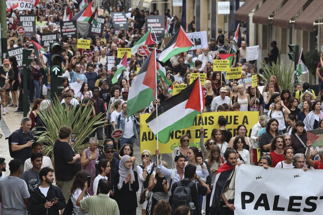 Más de un millar de personas se manifestaron este domingo en Lisboa para pedir el fin del «genocidio» y «apartheid» en la Franja de Gaza, sanciones contra Israel y un acuerdo de paz «justo» que incluya en las negociaciones a los palestinos.