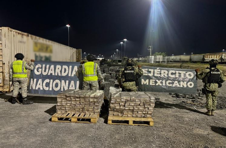 La dependencia destacó que en Nuevo Laredo, Tamaulipas, elementos de GN y Ejército Mexicano, hallaron dentro de un contenedor procedente de San Luis Potosí y con destino a Arkansas, Estados Unidos, 20 tarimas con piedra, las cuales contenían 530 kilogramos de metanfetaminas, el costo de la droga asegurada es de 144 millones de pesos