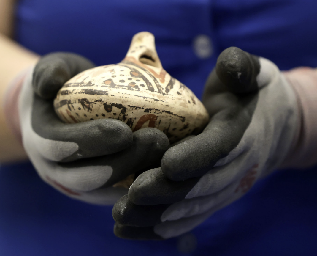 La arqueóloga del Museo Nacional costarricense Cleria Ruiz explicó las características de las piezas, que datan de entre el año 300 y el 1.500, en especial de la ocarina hecha de arcilla y que como peculiaridad presenta los orificios personalizados para que fuera utilizada por una persona zurda.
