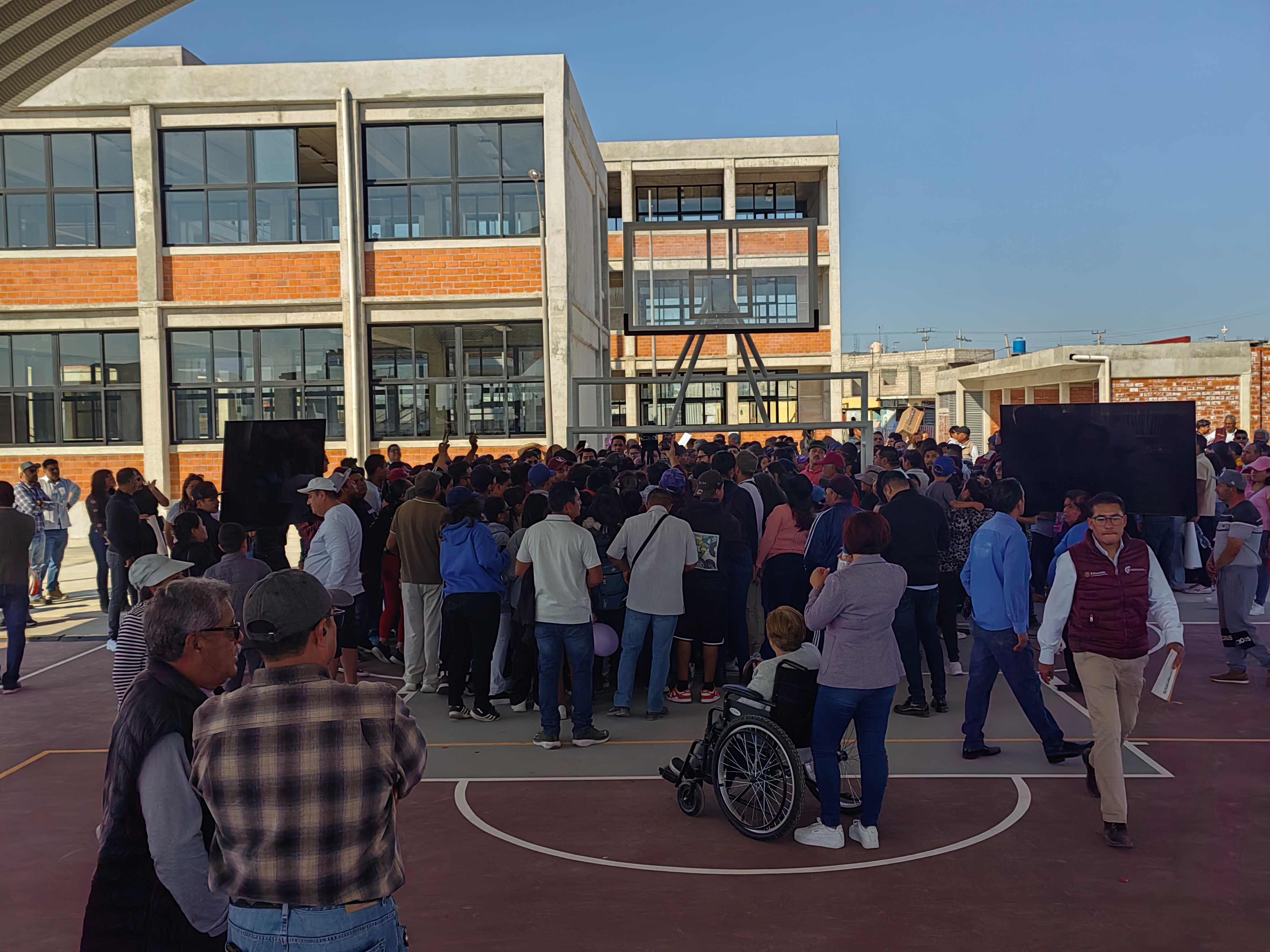 Alrededor de las 14:30 llegó la presidenta de México, y nadie pudo contener a la gente que se coló al evento, ahí, Claudia Sheinbaum reconoció que no se habían puesto sillas para recibirlos, sin embargo y debido a todo el desorden, los invitó a quedarse, escuchar las noticias sobre el plantel educativo y posteriormente a tomarse la foto con ella y saludarlos personalmente.