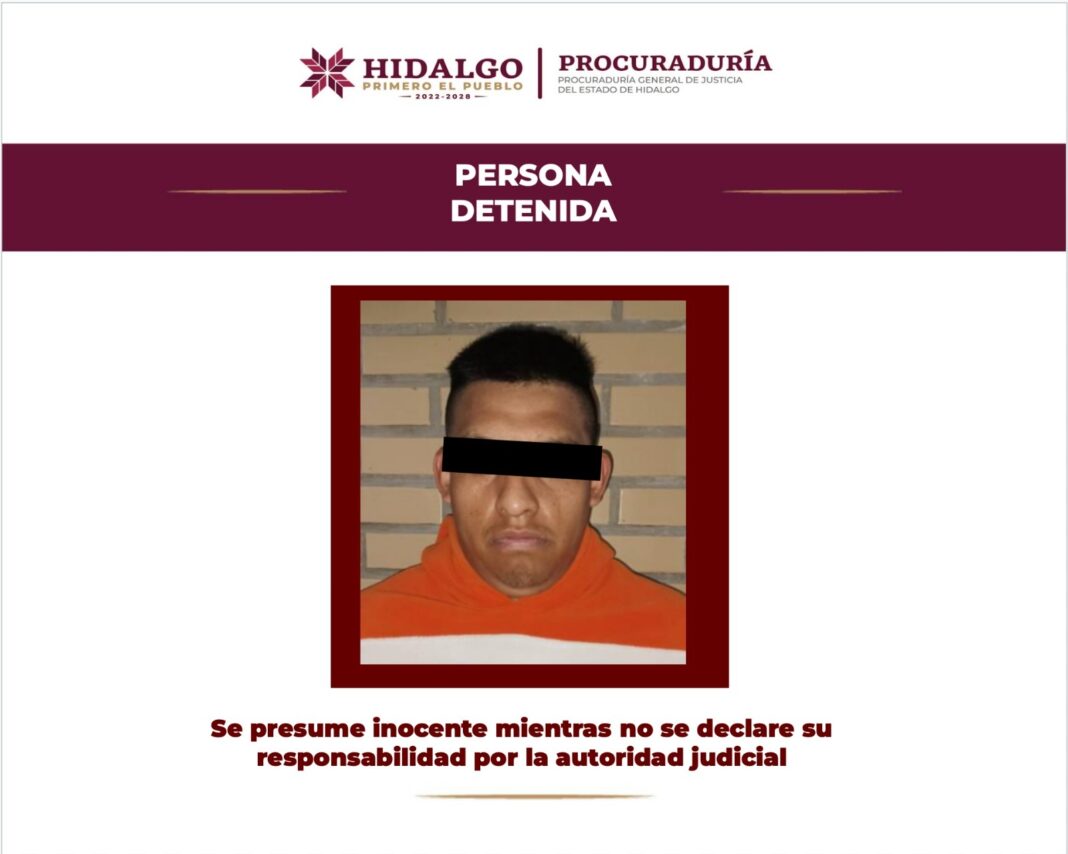 Elementos de la Agencia de Investigación Criminal de la Procuraduría General de Justicia del Estado de Hidalgo (PGJEH) detuvieron a una persona de iniciales E. R. R., por encontrarse en posesión de armas de fuego, cartuchos útiles, vehículos con reporte de robo y estupefacientes.