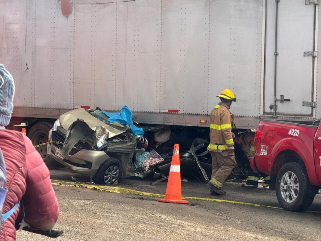 La mañana de este lunes 06 de octubre se registró un aparatoso accidente sobre la carretera México-Tulancingo, a la altura de la gasolinera de Singuilucan, en dirección a la Ciudad de México, donde dos camionetas se incrustaron en la parte baja de una caja que era jalada por un tráiler, el cual salía de la estación de servicio y se incorporó a la carretera, al parecer de forma imprudente.