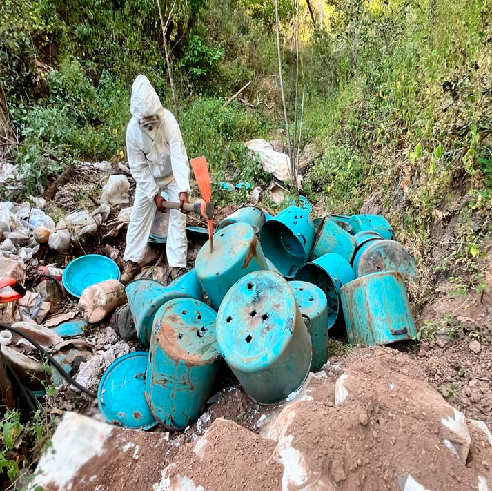 La dependencia indicó que en Culiacán y Badiraguato, localizaron e inhabilitaron once áreas de concentración de material diverso para la fabricación de drogas sintéticas, aseguraron 12 mil 725 litros y 810 kilogramos de sustancias químicas para la elaboración de metanfetamina y un tanque de gas LP. La afectación económica a la delincuencia organizada es de 276 millones de pesos.