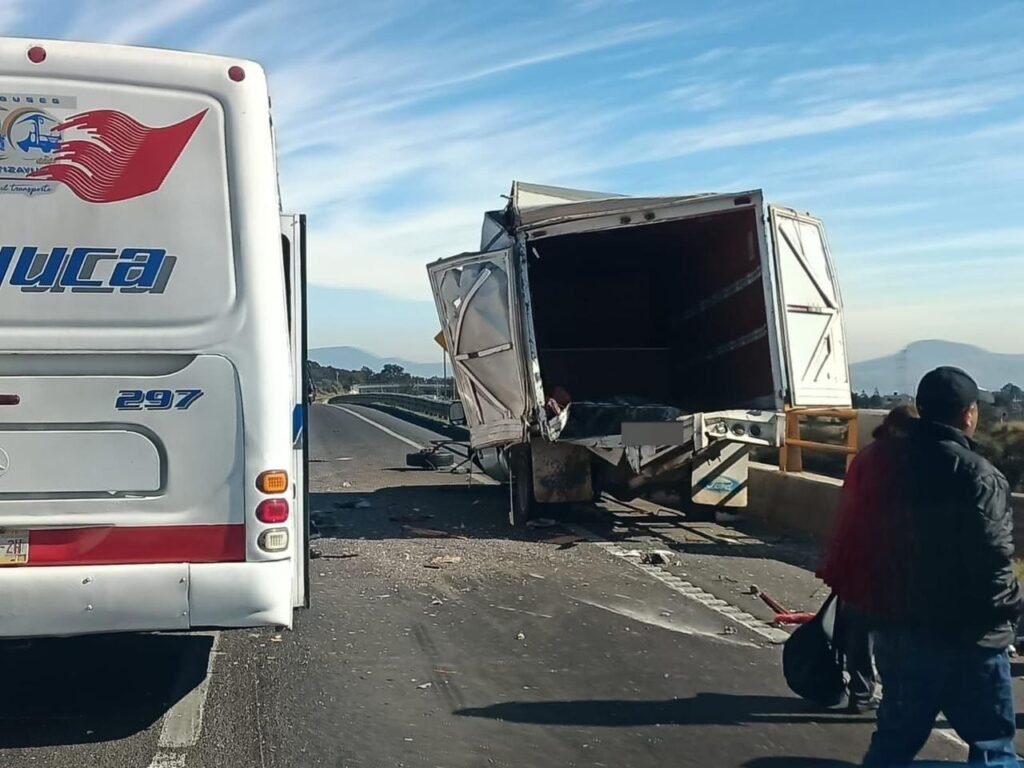 El choque ocurri a la altura del kil metro 80, en el carril con dirección a Tulancingo, lo cual ocasion un lento tr nsito vehicular, debido al corto espacio que qued libre para el paso de las unidades.