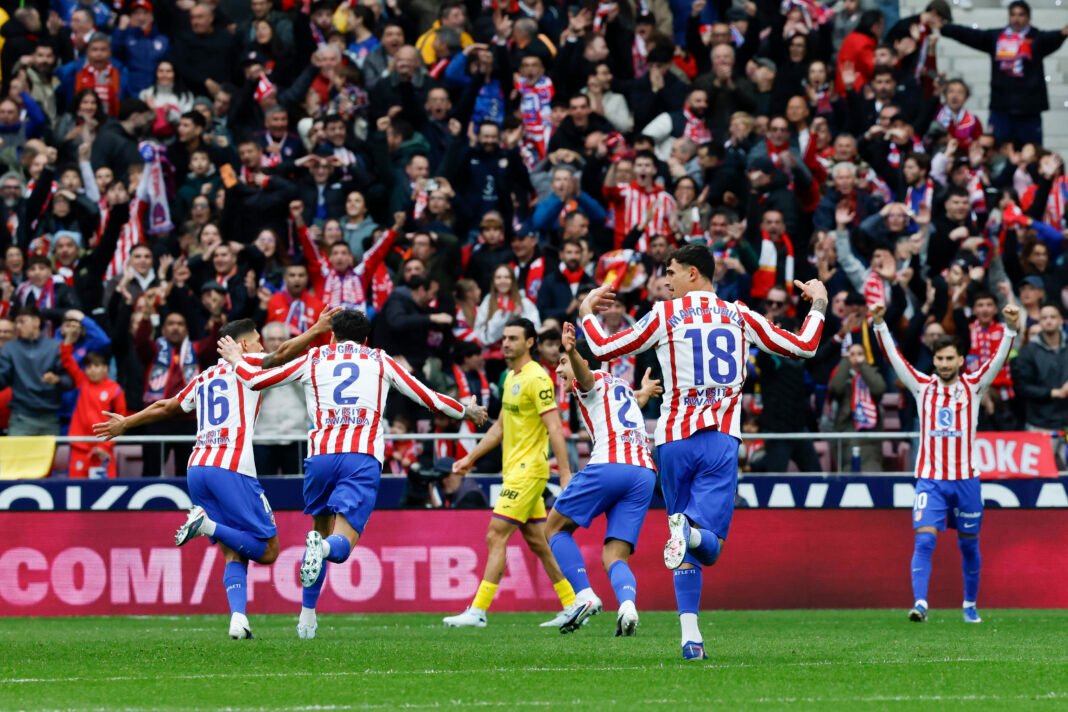 El once completo del Atlético de Madrid lo componen; Musso en la portería; Molina, Pubill, Giménez, Lenglet, Nico González; Vargas, Koke, Baena; Almada y Sortloth.