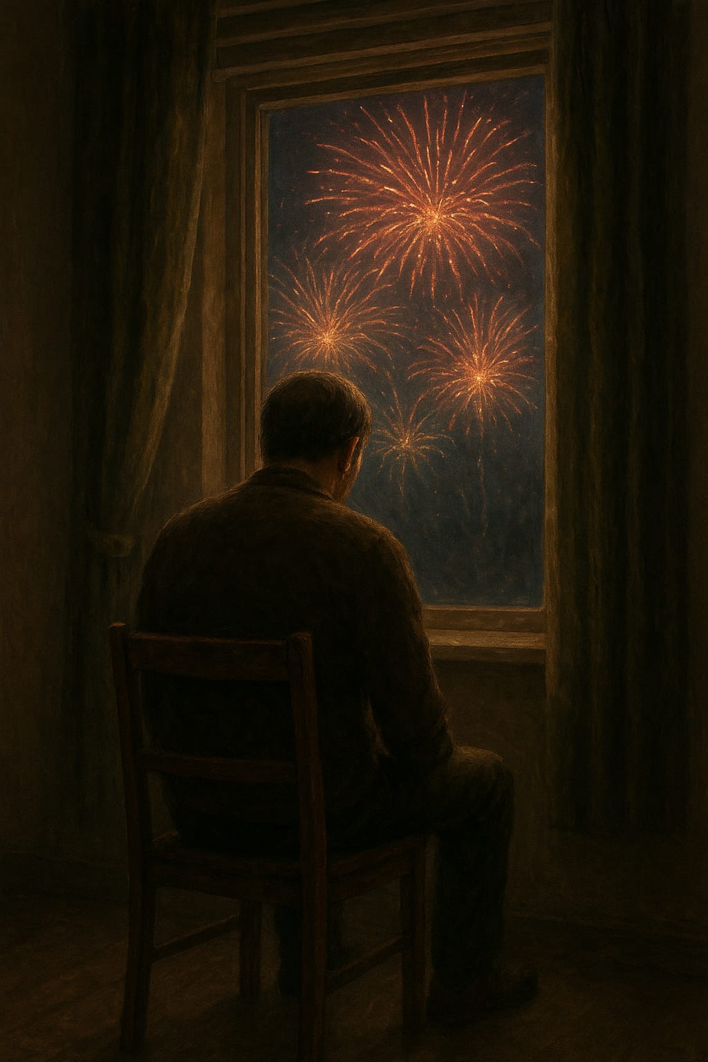 Se sentó junto a la ventana, observó los fuegos artificiales lejanos y pensó en lo mucho que había intentado sostenerse. Pensó también en lo difícil que era pedir ayuda cuando uno ya no tiene fuerzas para explicar el dolor. En la víspera del año nuevo, el mundo celebraba la esperanza. Él, agotado de fingir que la tenía, se despidió en silencio.