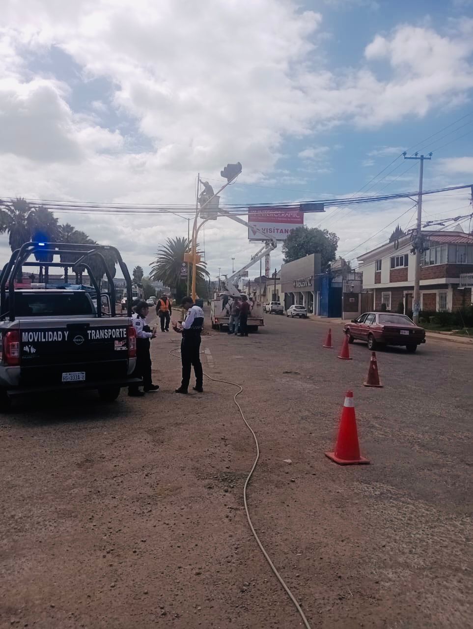 Desde temprana hora de este 15 de octubre, autoridades municipales, técnicos y personal de apoyo del gobierno estatal, efectuaron la instalación de un nuevo semáforo frente a la zona de centros comerciales, en reposición a uno derribado en días pasados, a causa de un percance automovilístico.