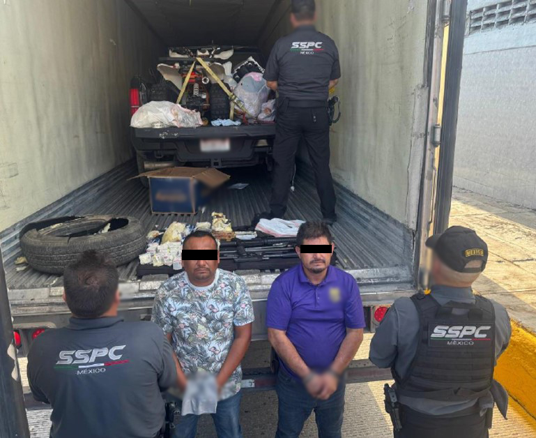 La dependencia destacó que en Coyuca de Benítez, Guerrero, en el libramiento a Acapulco, elementos de la Secretaría de Seguridad y Protección Ciudadana (SSPC) detuvieron a dos hombres a bordo de un tractocamión, quienes transportaban un vehículo y una cuatrimoto de procedencia extranjera, aseguraron cuatro armas largas, un arma corta, seis cargadores y dos mil 500 cartuchos. En Chilpancingo, cumplimentaron una orden de aprehensión contra un menor de edad por su relación en un homicidio.