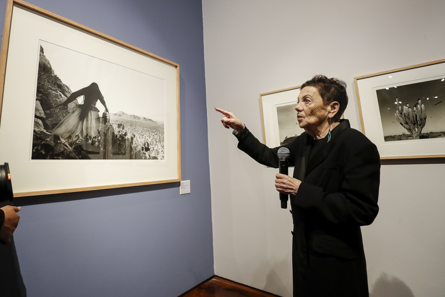 “Lo único que mata a la muerte es la fotografía, porque se muere la gente y su fotografía queda. Es una frase que me impresiona mucho. Para mí lo que pasa en el país y en otros países es una emoción muy grande”, afirmó Iturbide citando al poeta francés Jean Cocteau, tras un recorrido por la muestra curada por Juan Coronel Rivera.