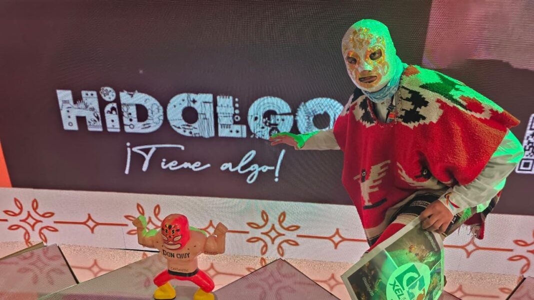 En este espacio, la marca #HidalgoTieneAlgo volvió a tomar fuerza al posicionarse con la presencia de “El Santo”, un ícono cultural que reafirma la identidad del estado ante audiencias internacionales.