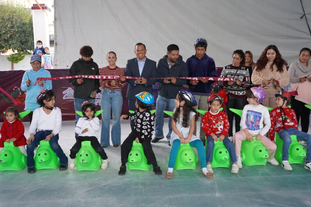 Cuautepec, Hgo.- Con el objetivo de fomentar la convivencia familiar y brindar espacios de recreación durante la temporada decembrina, el gobierno municipal de Cuautepec de Hinojosa inauguró este martes 16 de diciembre la pista de hielo para patinar, una atracción pensada para el disfrute de niñas, niños, jóvenes y personas adultas.