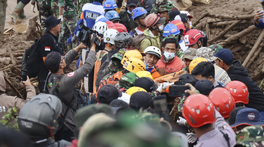 Entretanto, los rescatistas intentan localizar a 15 personas, que se encontraban en la treintena de casas que quedaron sepultadas bajo escombros tras el deslizamiento en la aldea de Pasirlangu.