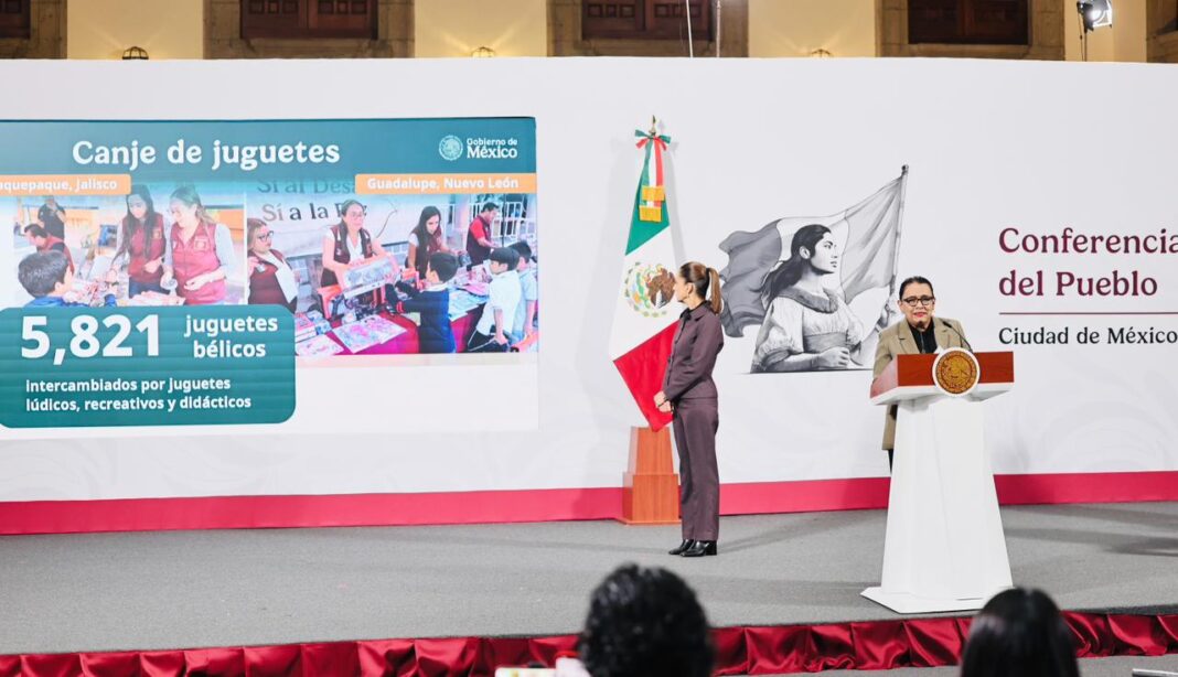 Rosa Icela Rodríguez, titular de la Secretaría de Gobernación del gobierno federal, informó que derivado de los trabajos realizados en torno al programa: “ “Sí al Desarme, Sí a la Paz”, resaltó que desde el 10 de enero a la fecha, se intercambiaron 5 mil 821 juguetes bélicos por juguetes educativos.