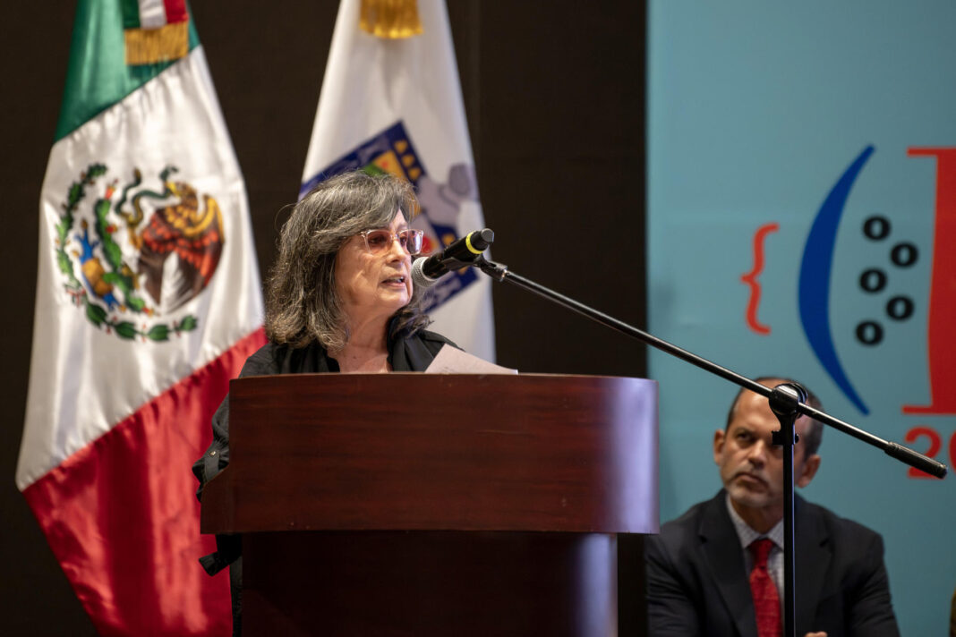 La autora de ‘Delirio’ (2004) dirigió un mensaje inaugural de la trigésima tercera edición de la FIL Monterrey, que se realiza en las instalaciones del Centro Internacional de Negocios (Cintermex), del 11 al 19 de octubre.