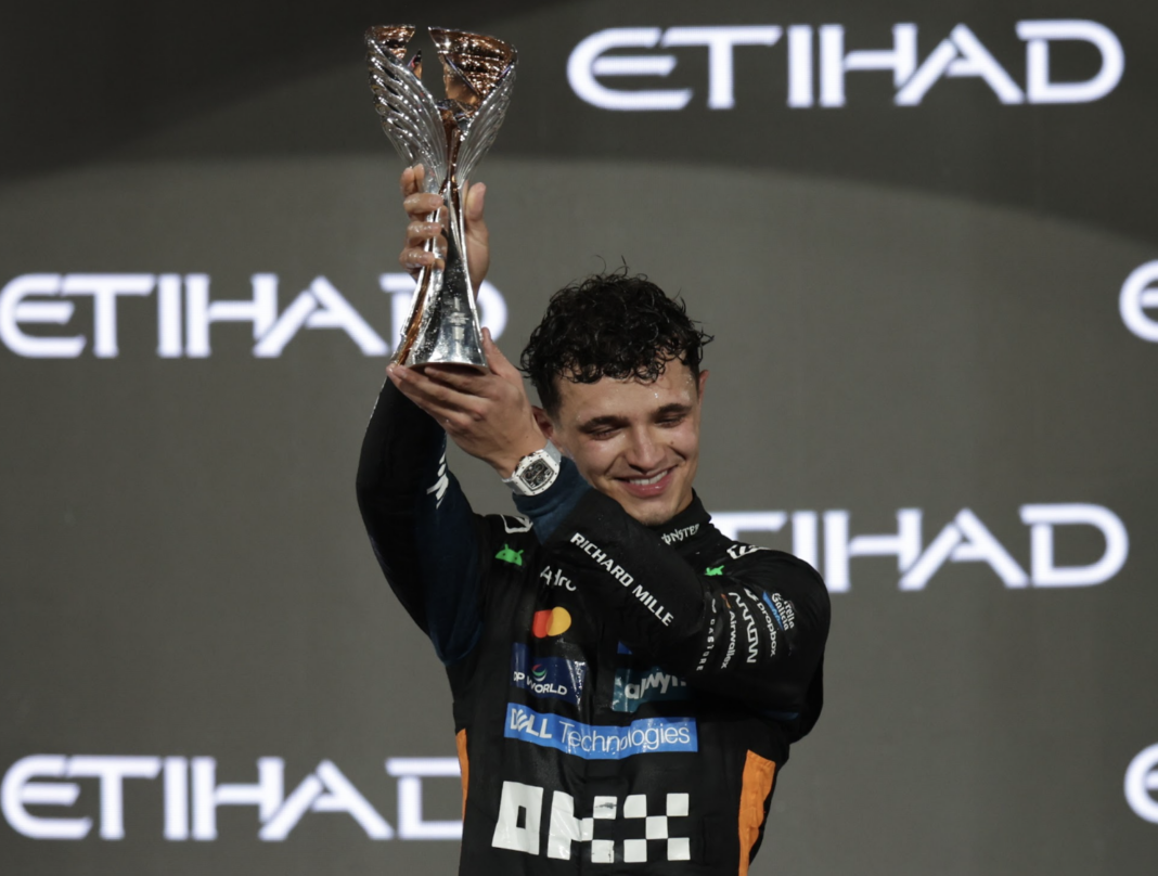 El inglés Lando Norris (McLaren) se proclamó nuevo campeón del mundo de Fórmula Uno al acabar tercero el Gran Premio de Abu Dabi, que ganó, en el circuito de Yas Marina, el cuádruple campeón mundial neerlandés Max Verstappen (Red Bull), protagonista de un espectacular final de temporada que no evitó que la escudería de Woking completase su mejor año en lo que va de siglo al ganar los dos títulos en liza.