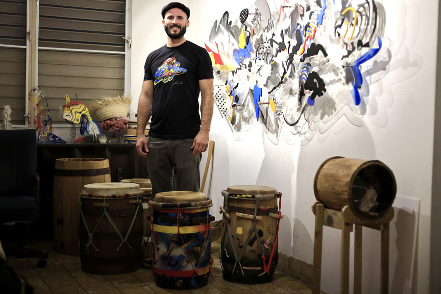 «Empecé a enseñarle a otras personas a construir sus instrumentos musicales ya que son sumamente costosos y no todo el mundo tiene accesibilidad a un artesano cerca», precisa Vázquez, uno de los fundadores del batey comunitario de La Plaza del Negro, que congrega todos los viernes a decenas de personas para bailar y tocar bomba en el malecón de La Perla.