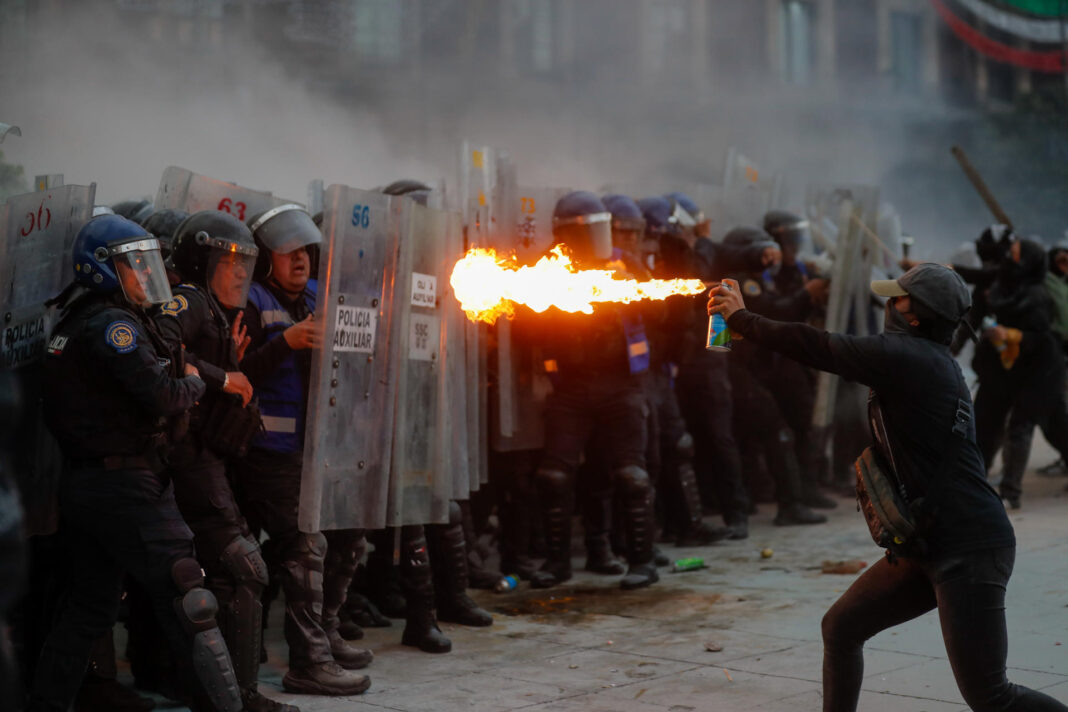 Con la protesta -apenas iniciada a las 16.00 horas (local) en la Plaza de las Tres Culturas en Tlatelolco con destino al Zócalo, la plaza más grande de México- los disturbios arrancaron con pintadas, saqueos en tiendas departamentales, de las cuales se extrajo comida, botes de pintura, aerosoles y objetos que posteriormente fueron usados para violentar a la autoridad policial e incluso a periodistas y sus equipos de trabajo.