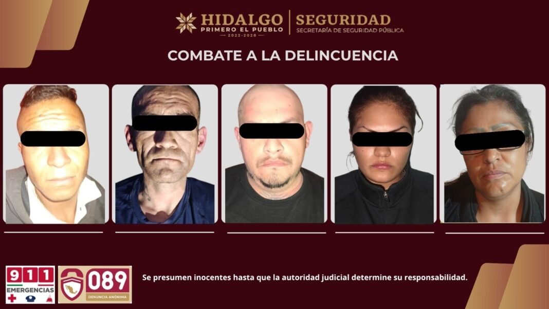 Las acciones, basadas en información de la SSPH, se desarrollaron simultáneamente en las colonias Jorge Rojo Lugo y La Palma. El resultado del operativo fue la detención de cinco personas, cuatro de ellas originarias de otras entidades, así como el aseguramiento de 422 dosis de sustancias.