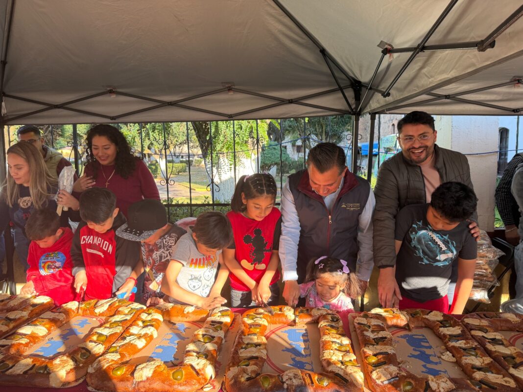 Cuautepec de Hinojosa, Hgo.- Con el objetivo de preservar las tradiciones y fortalecer la convivencia familiar, el gobierno de Cuautepec de Hinojosa, a través del Sistema DIF municipal, llevó a cabo la tradicional partida de rosca en el jardín «Felipe Ángeles» la tarde de este martes 6 de enero.