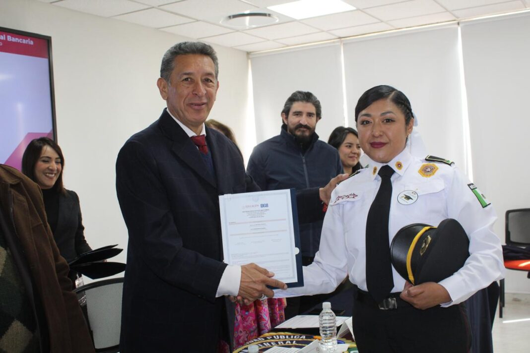 La entrega de estos documentos estuvo presidida por Francisco Martínez Gómez, titular de la Policía Bancaria; Francisco Patiño Cardona director del Consejo de Ciencia, Tecnología e Innovación de Hidalgo (CITNOVA), y Roxana Mendoza Albores, directora de Mi Prepa Digital.