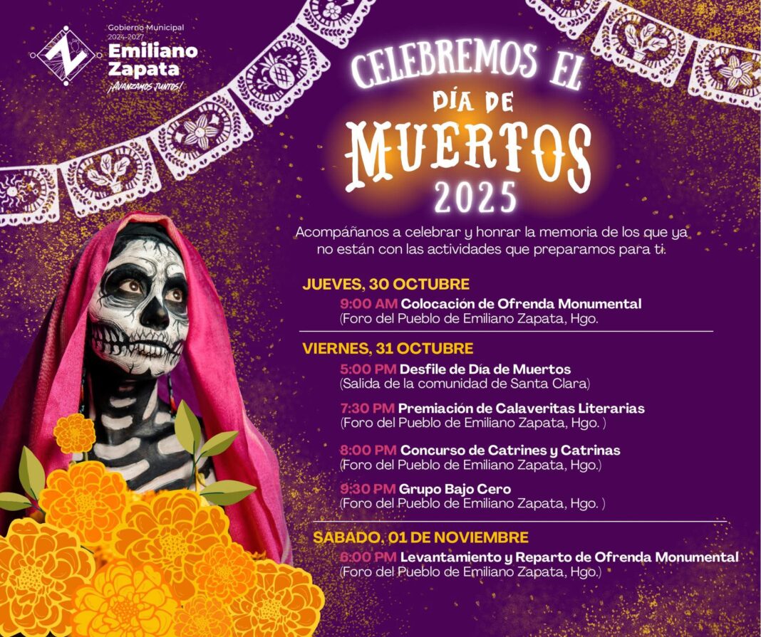 Emiliano Zapata, Hgo.- Con diversas actividades, la alcaldía de Emiliano Zapata, busca seguir rescatando una de las tradiciones mexicanas más arraigadas en el municipio, el Día de Muertos.