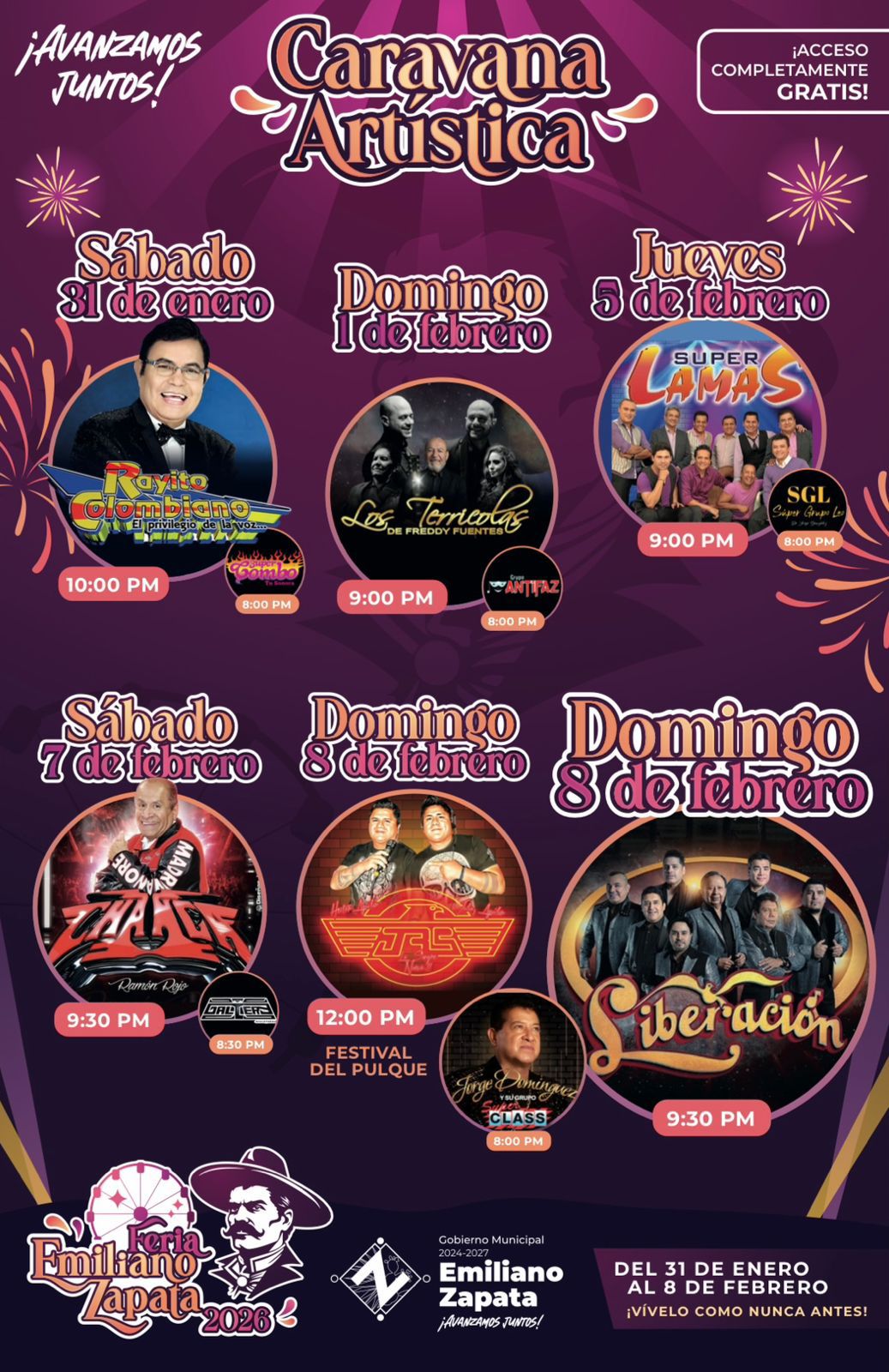 La presidenta municipal de Emiliano Zapata, señaló que esta feria, que se celebrará para conmemorar los 96 años de la fundación del poblado de San Lorenzo (hoy municipio de Emiliano Zapata), tendrá la presentación de artistas de talla nacional e internacional, así como locales, los cuales engalanarán las actividades.