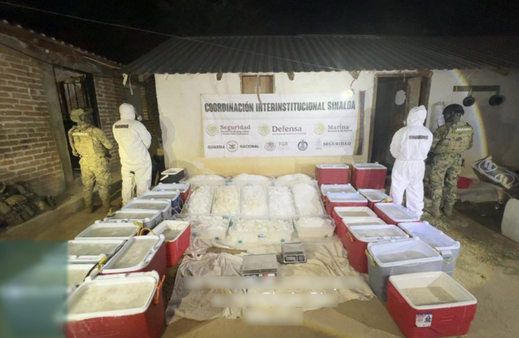 Mientras que en Choix, Sinaloa, confiscaron equipo diverso para la fabricación de drogas sintéticas y mil 425 kilogramos de metanfetamina. En Culiacán y Cosalá, localizaron e inhabilitaron siete áreas de concentración de material diverso para la fabricación de drogas sintéticas, aseguraron cinco mil 650 litros de sustancias para la elaboración de metanfetamina, un reactor de síntesis orgánica y dos condensadores. La afectación económica a la delincuencia organizada es de 113 millones de pesos.