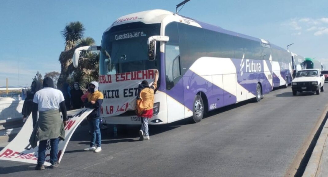 Jóvenes que se identificaron como estudiantes de la Escuela Normal Rural Luis Villarreal, conocida como El Mexe, retuvieron al menos ocho autobuses de pasajeros sobre el bulevar Santa Catarina, a la altura del retorno del fraccionamiento Villas de Pachuca, ubicado al sur de la ciudad.