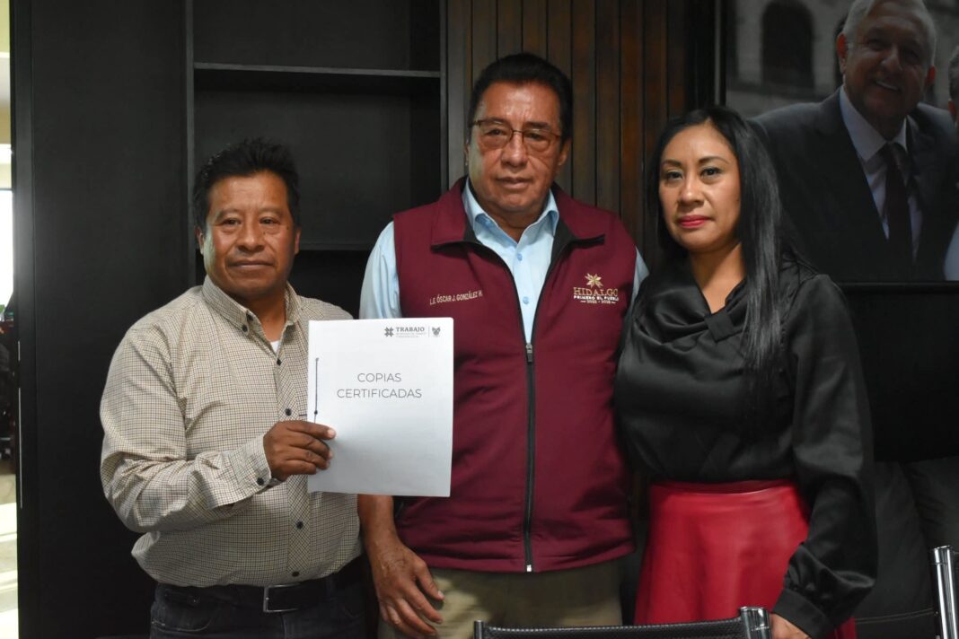 Emiliano Zapata, Hgo.- Con el objetivo de fortalecer las relaciones laborales entre la alcaldía de Emiliano Zapata y el Sindicato Único de Trabajadores al Servicio del Honorable Ayuntamiento de Emiliano Zapata (SUTSHAEZ), se firmaron las nuevas condiciones generales de trabajo ante la Secretaría del Trabajo y Previsión Social de Hidalgo (STPSH).