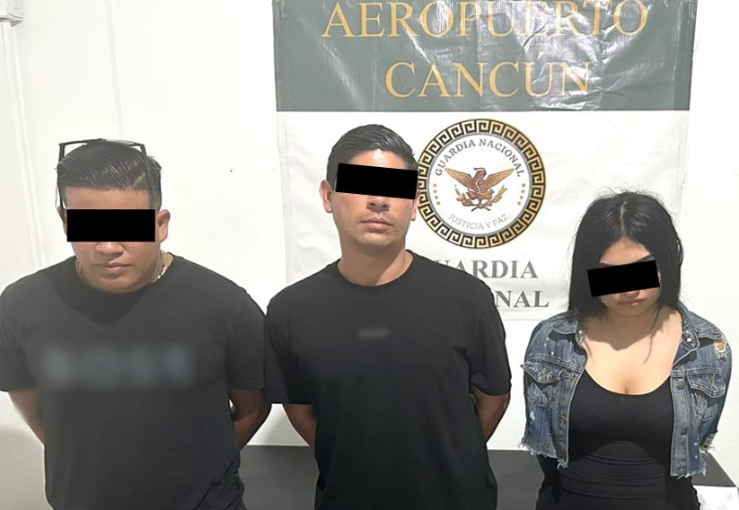 En Benito Juárez, Quintana Roo, en el Aeropuerto, al realizar una inspección en una aeronave, detuvieron a tres personas, entre ellas una mujer de nacionalidad extranjera, incautaron un arma larga, 51 cargadores, tres mil 308 cartuchos, 39 kilogramos de metanfetamina y 247mil 120 pesos. El costo de la droga asegurada es de 10.4 millones de pesos.