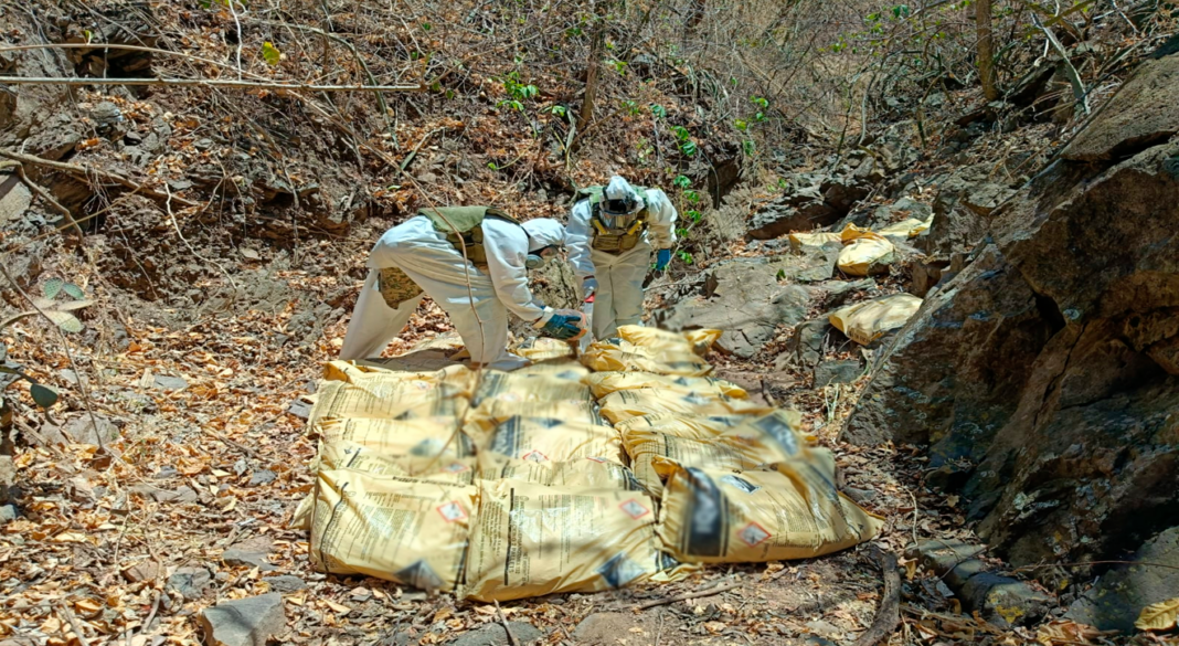 Mientras que en Culiacán, Sinaloa, localizaron e inhabilitaron ocho áreas de concentración de material diverso para la fabricación de drogas, confiscaron cuatro mil 510 litros y 840 kilogramos de sustancias para elaborar metanfetamina. La afectación económica a la delincuencia organizada es de 106 millones de pesos.