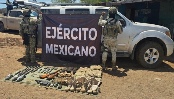 En Escuinapa, Sinaloa, elementos del Ejército Mexicano, durante recorridos de seguridad, aseguraron tres armas largas, 43 cargadores, más de siete mil cartuchos, tres chalecos tácticos, 10 placas balísticas, dos pantalones y dos playeras tácticas.