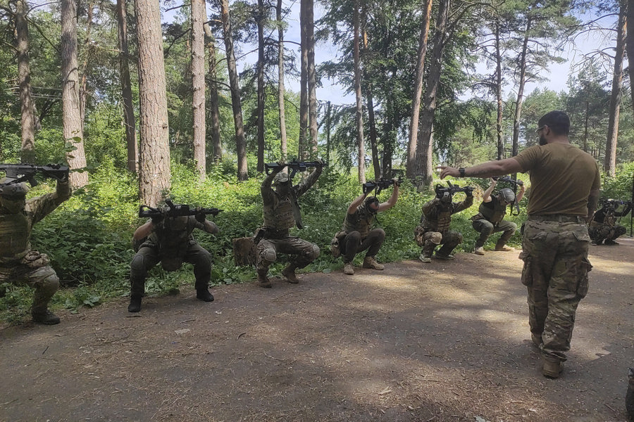 «Enseñan a los niños y a los adolescentes a cavar trincheras, manejar armas y marchar en formación», dijo Siniuk.