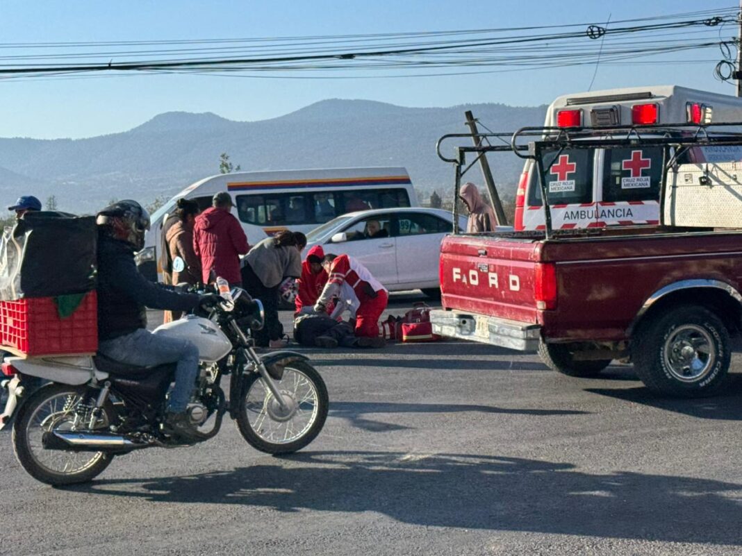 El motociclista quedó debajo de la pesada unidad, la cual quiso seguir de largo pero atropelló con sus ejes traseros al piloto de moto, ocasionándole fractura expuesta en una de sus extremidades inferiores.