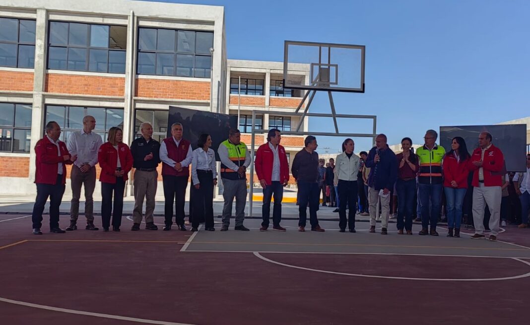 Detalló que la construcción del plantel tiene un avance del 98 por ciento y cuenta con cinco edificios, 12 aulas, un laboratorio, tres talleres, una cancha funcional, plaza cívica y áreas verdes, derivado de una inversión de 50 millones de pesos, más 17.3 millones para equipamiento.