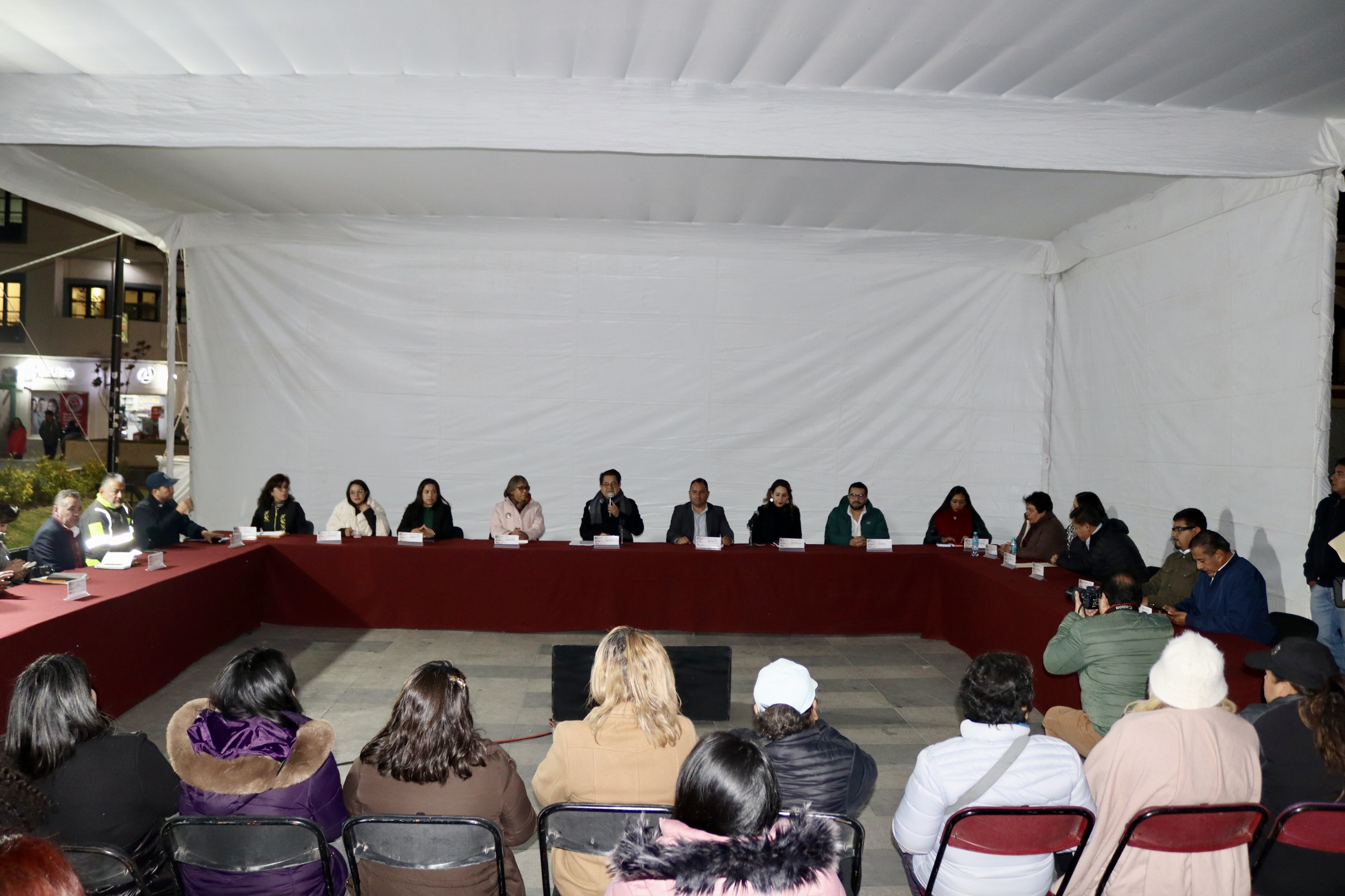 El secretario de Gobierno, Guillermo Olivares Reyna, encabezó una reunión de seguimiento de la Jornada por la Paz y Bienestar del Pueblo en la Plaza Independencia de Pachuca. Este espacio de diálogo directo congregó a servidores públicos de los tres niveles de gobierno para atender las solicitudes de mujeres víctimas de violencia y representantes de colectivos.