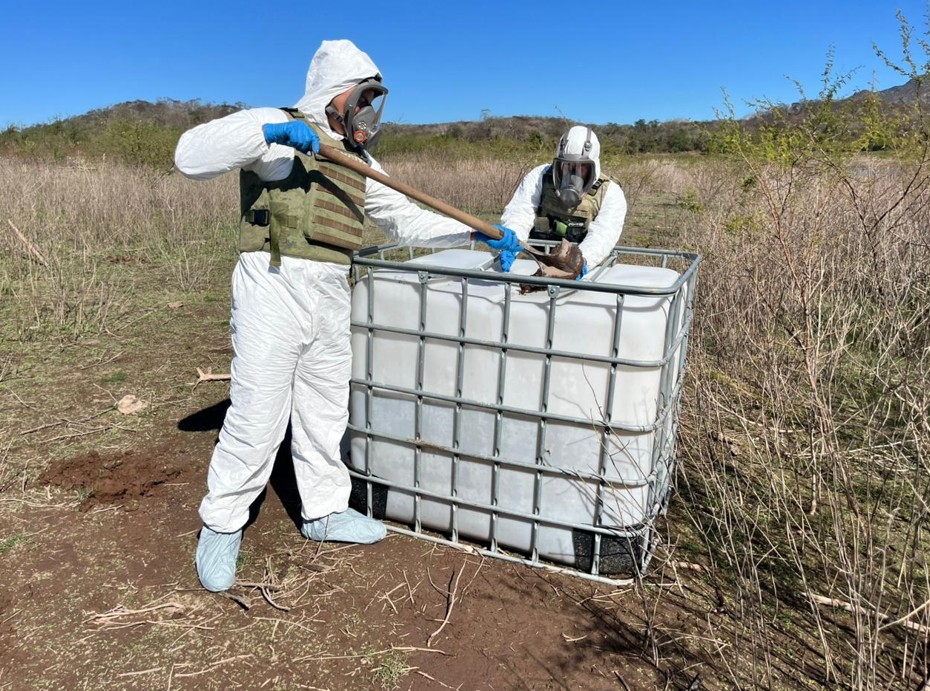 Por otra parte señalaron que, en Culiacán, Sinaloa, localizaron e inhabilitaron siete áreas de concentración de material diverso para la fabricación de drogas sintéticas, aseguraron tres mil 350 litros de sustancias para la elaboración de metanfetamina. La afectación económica a la delincuencia organizada es de 66 millones de pesos.