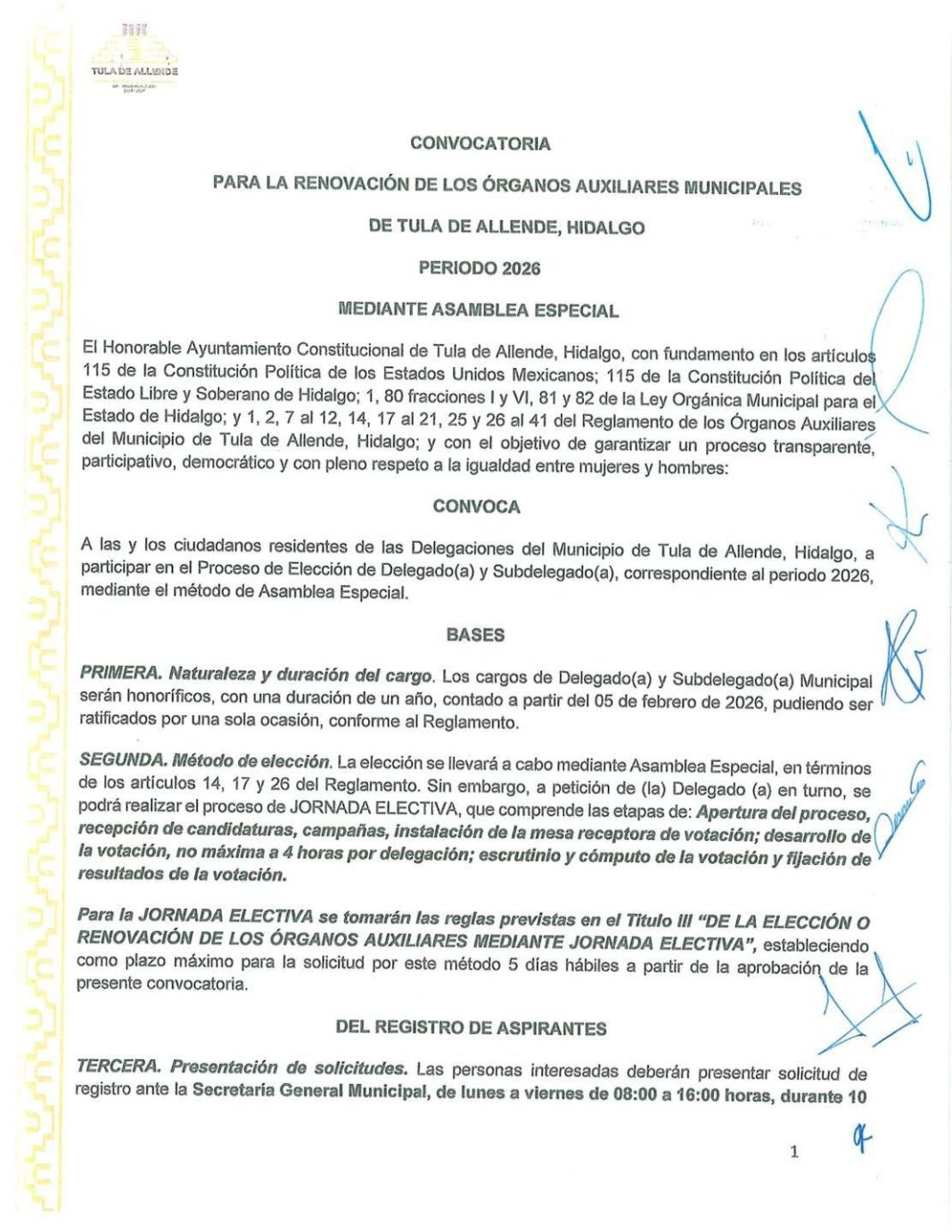 El gobierno municipal de Tula invita a las y los ciudadanos a participar en la Convocatoria para la Renovación de Órganos Auxiliares, un proceso democrático que permite seguir construyendo comunidades y colonias más organizadas, participativas y representativas.