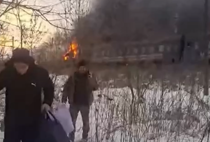 Según los testigos y como se ve en los vídeos que han compartido algunos pasajeros, uno de los coches del tren se incendió después del impacto directo de un dron, obligando a los más de 200 pasajeros -entre los que había mujeres y niños pequeños- a evacuar de urgencia con el tren detenido junto a un bosque completamente nevado.