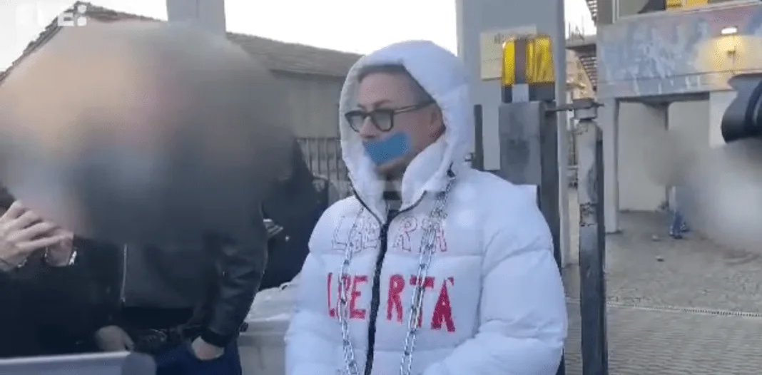 El actor, de 33 años y con miles de seguidores en sus redes, posó ante los medios frente al instituto Andrea Ponti de Gallarate con las manos encadenadas, la boca tapada con un adhesivo y un abrigo blanco en el que había escrito en rojo la palabra «libertad».